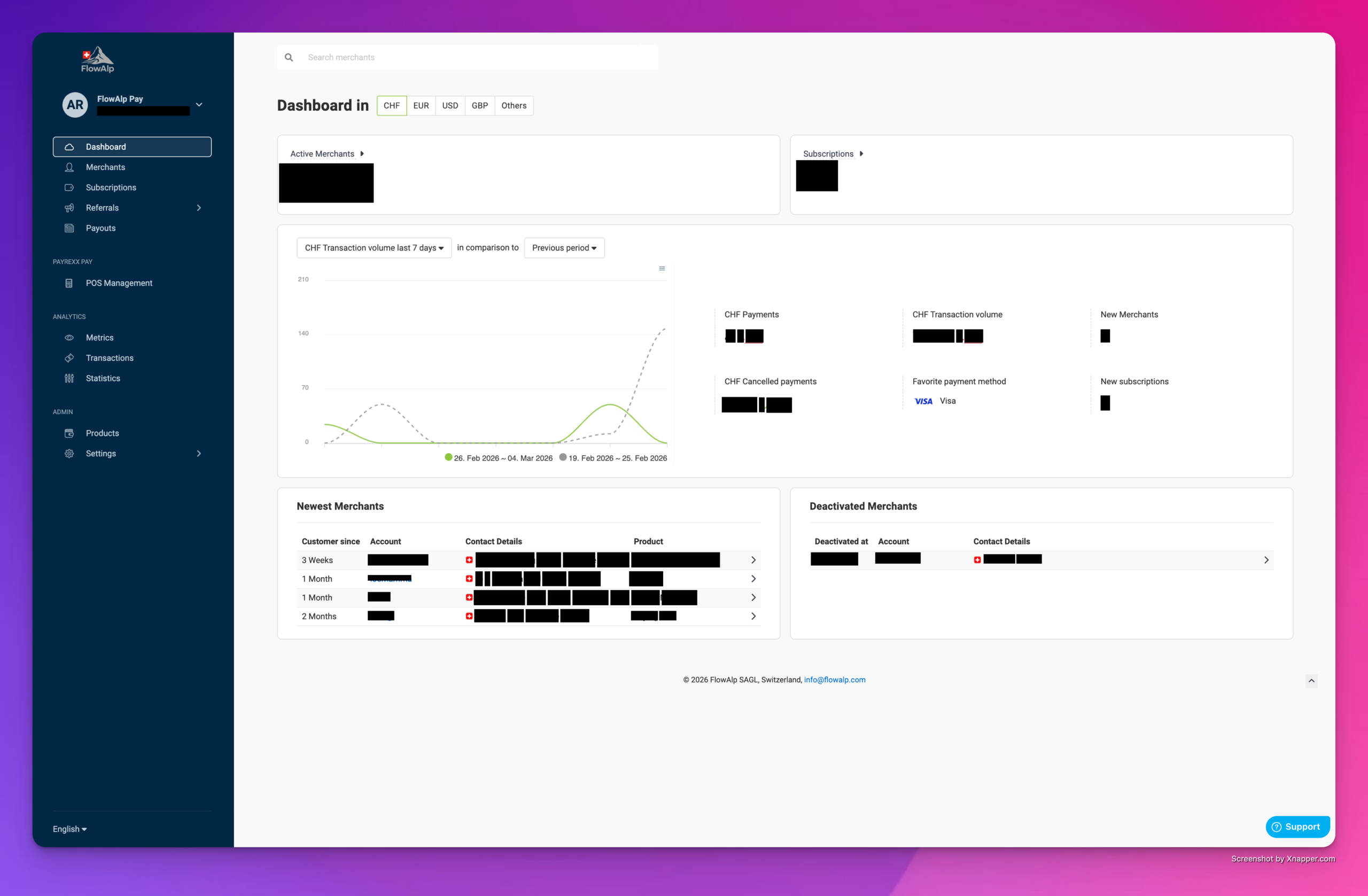 FlowAlp Pay provides a single payment gateway for online and on-site payments, with clear reporting, streamlined payouts, and strong security standards — so you can focus on your business instead of payment operations. Accept — Online checkout and in-person payments under one setup. Control — Transaction overview, exports, and operational visibility. Secure — Industry-standard security and fraud prevention built in.